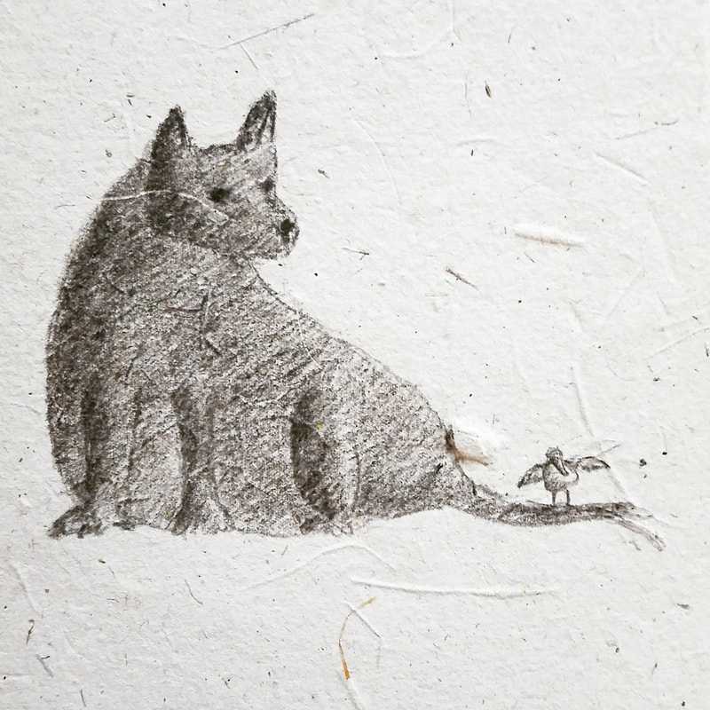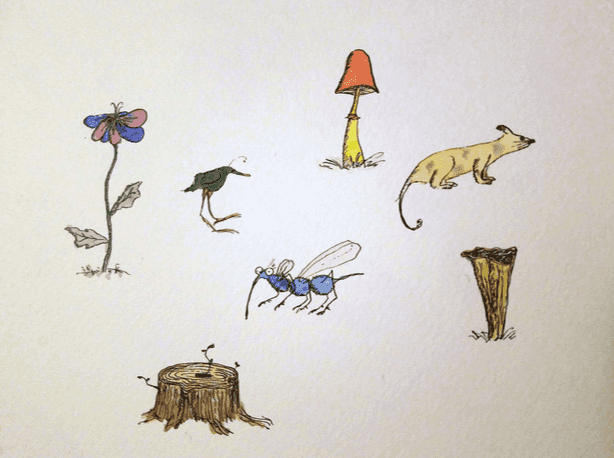 I like inventing weird little creatures no one quite knows how to define. Sometimes they're mushrooms, sometimes they're suspicious-looking mammals, and quite often they have something to do with birds.